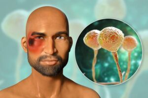 La mucormicosis es una infección poco común. Las personas lo contraen cuando entran en contacto con mucormicetos, un tipo de moho. Los síntomas iniciales suelen ser bastante comunes: ojos rojos o nariz enrojecida. Más tarde, los pacientes pueden tener secreción nasal con sangre o negra, quizás también fiebre y pueden experimentar dificultad para respirar.
