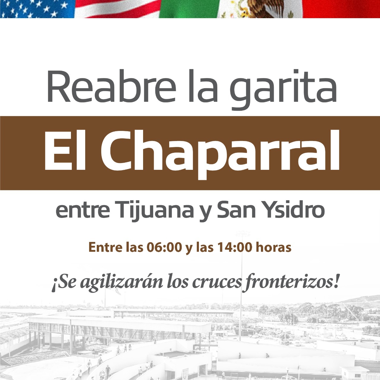 La garita «El Chaparral» PedWest de Tijuana a San Ysidro, reabrirá a la circulación a partir de este lunes 9 de enero con un horario de seis de la mañana a dos de la tarde, tras estar cerrado desde el 20 de abril 2020 ,tras la pandemia del CIVID 19.