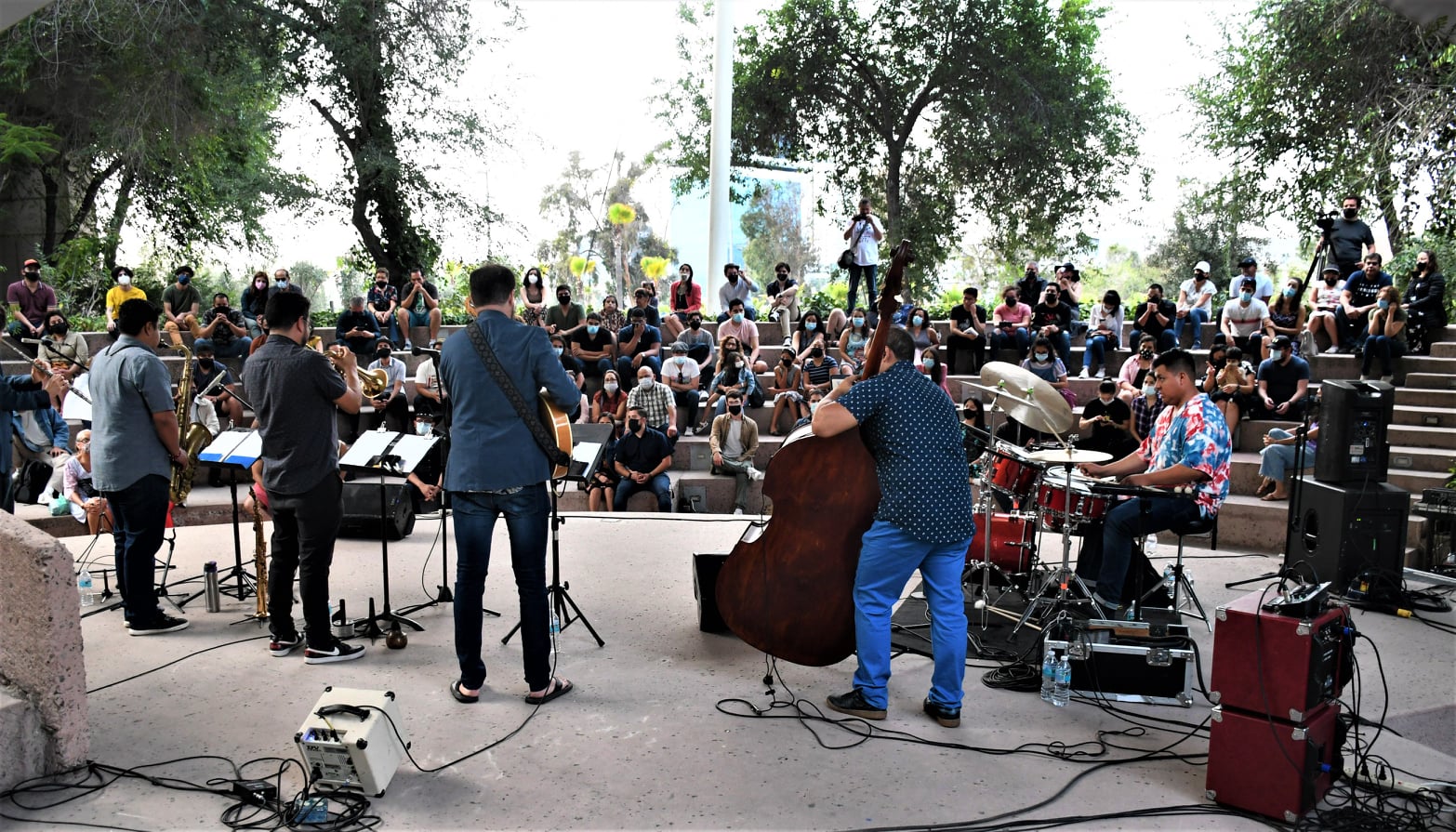 El quinteto se volvió sexteto y sonó como una orquesta múltiple. El Foro Jardín se llenó de ritmo y los presentes comenzaron a mover los pies conmovidos por el momento. Será que nos hemos vuelto más sensibles, será el sereno, pero que bonito es lo bonito, qué belleza escuchar un solo de trompeta del gran Iván Trujillo (oro molido de Ensenada), los batacazos con ritmo de Abraham Lizardo, el fino saxofón de Fernando Solares, la guitarra precisa de Edwin Montes en chanclas, el sentido complemento del contrabajista José Luis Rodríguez y, por supuesto, la batuta, flautas y silbatos de Wilfrido Terrazas que está hecho todo un maestro.
