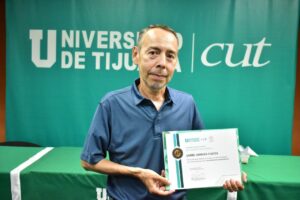 Después de responder algunas inquietudes de los estudiantes de Comunicación y Publicidad, el maestro Osvaldo Muñoz Pérez, coordinador Académico de la Licenciatura en mención, le hizo entrega de un reconocimiento con el que se agradeció al periodista Jaime Adrián Canta su participación en el espacio de Vida Universitaria del CUT. [Nota infotmativa y fotos del CUT Universidad de Tijuana]