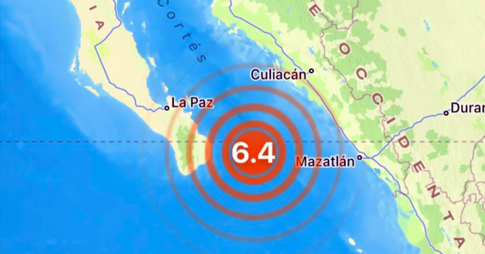 Reportan Sismo de 6.4 grados en San José del Cabo, Baj California Sur. El domingo a las 14.30 horas