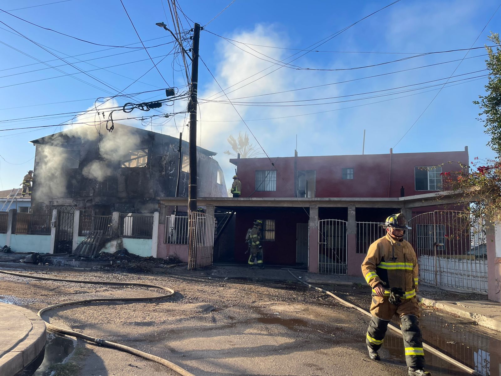 Se atendieron 2 reportes por incendio en casa-habitación: El primer hecho tuvo lugar en Misión de las Californias, con afectaciones totales en una casa de material, sin personas lesionadas.