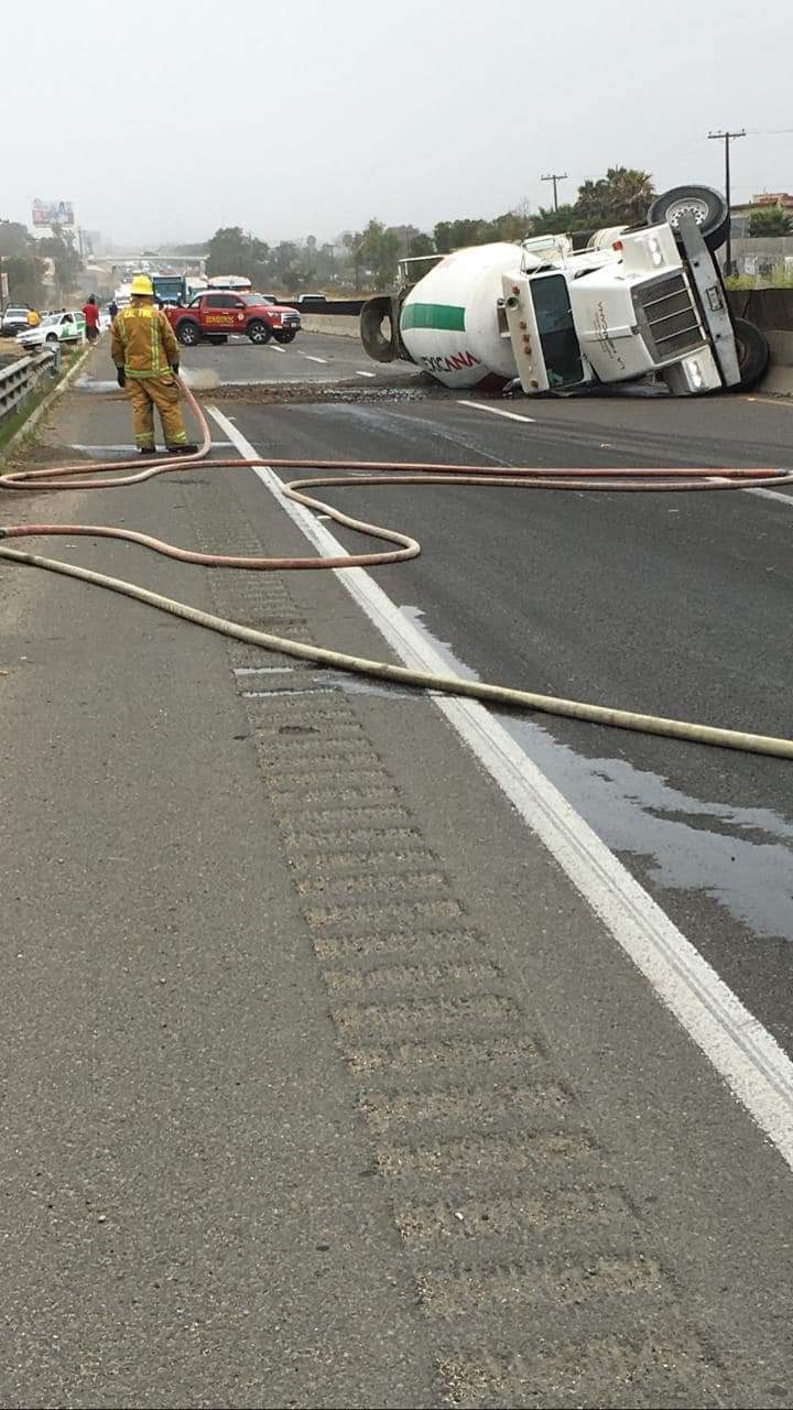 Una unidad de transporte de carga, se accidentado la mañana de este domingo, en la carretera a Playas de Rosarito, kilometro 37