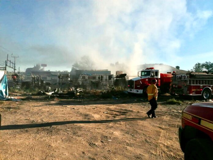 REPORTE: MUERE NIÑA Y ANCIANO EN INCENDIO.Se quema»Yonke»con 14 automóviles, en La Gloria