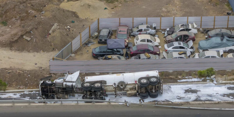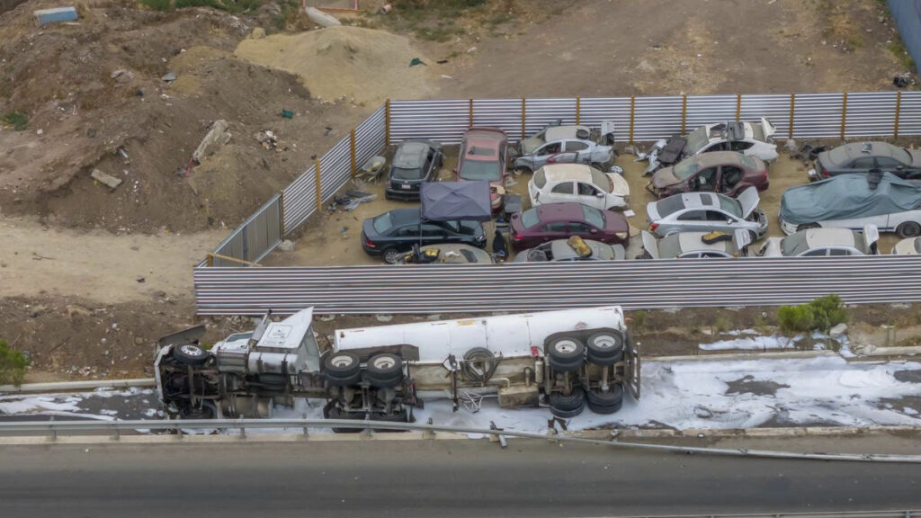 REPORTE: Se volcó pipa con combustible en entrada a Playas de Rosarito y escénica a Ensenada.Cierran vialidad