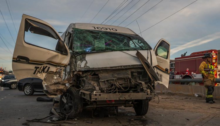 TIJUANA, BAJA CALIFORNIA, 17 DE DICIEMBRE DE 2025.- La mañana del miércoles, un total de 18 personas resultaron lesionadas luego de una carambola en la que se vieron involucrados al menos cuatro vehículos, entre ellos un taxi de ruta.