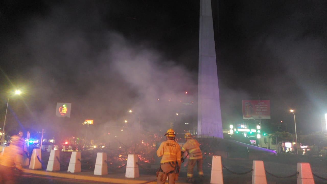 La noche de este jueves los arbustos que están en la jardinera de la glorieta del Monumento México (Las Tijeras) se quemaron por razones aún desconocidas, sin embargo, los bomberos de la Zona Centro controlaron las llamas.