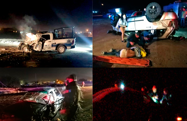 El oficial que perdió la vida fue identificado como Samuel Jiménez Vega, quien conducía la patrulla 544, pick up de la Dirección de Seguridad Pública de Mexicali. Como presunto responsable quedó lesionado y detenido Luis Álvaro “N”, de 29 años, quien tripulaba una camioneta Grand Cherokee, color gris, placas de California 8HQN783, la cual quedó volcada en el lugar.