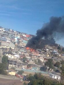 TIJUANA,BAJA CALIFORNIA, 03 de diciembre 2023.En Calzada L a Punta en Lomas Taurinas se registró un incendio de dos casas el domingo a las 13 horas, sin lesionados.