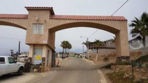 La valla de alambre de púas que rodea la mayor parte de Cantamar, una urbanización frente a la playa situada a unos 24 kilómetros al sur de Playas de Rosarito, apenas se distingue de las imponentes palmeras que rodean la propiedad y del ruido de las olas del mar.