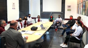 David González recibió a la sala de junta del Centro de Alto Rendimiento (CAR), a Stephania rodríguez, de canotaje; Karissa García, Melissa Orozco y Tania García, de patinaje de velocidad; Omar Silva, de judo; Juan McCormick y Armando Luque, de karate; y Esteban Hernández, de baile en silla de rueda.