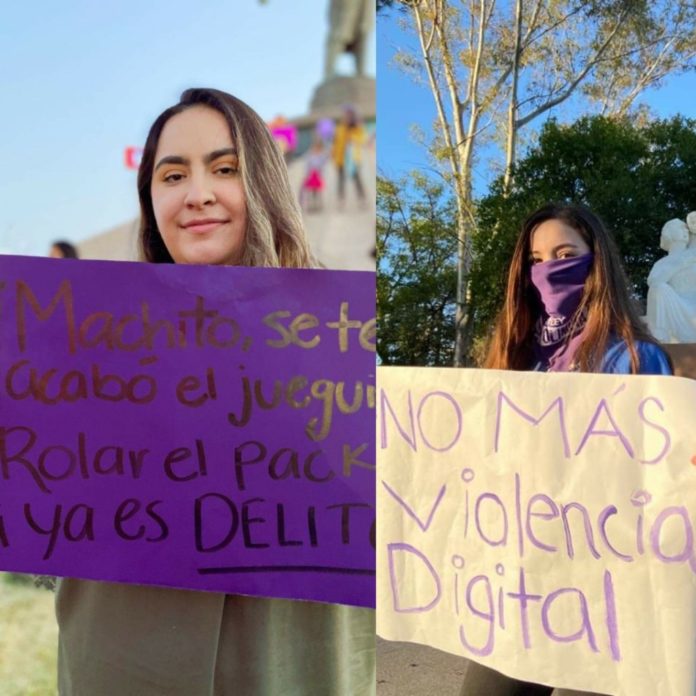 Una vez aprobada la Ley Olimpia en Baja California, la tarde de este miércoles, los colectivos de mujeres acudieron a lugares públicos para visibilizar estos delitos de violencia digital y ciberacoso con leyendas: machito se te acabó el juguetito. Rolar el pack ya es delito», «borra el pack, perro» y «no más violencia digital».