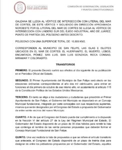 Mexicali, Baja California, 20 mayo 2021/-Con el impulso de una lucha de residentes por municipalizarse que data desde hace 3 décadas y por órdenes del Gobernador, Jaime Bonilla, el Congreso local decretó este miércoles 19 de mayo la creación del Séptimo municipio libre de Baja California.