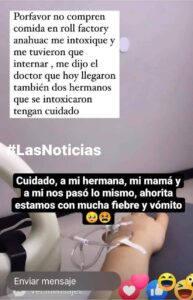 Cabe señalar que Roll Factory cumple con los protocolos de trato de seguridad alimentaria y de Higiene y manipulación de alimentos, por lo que el problema podría derivar de los proveedores de los ingredientes.