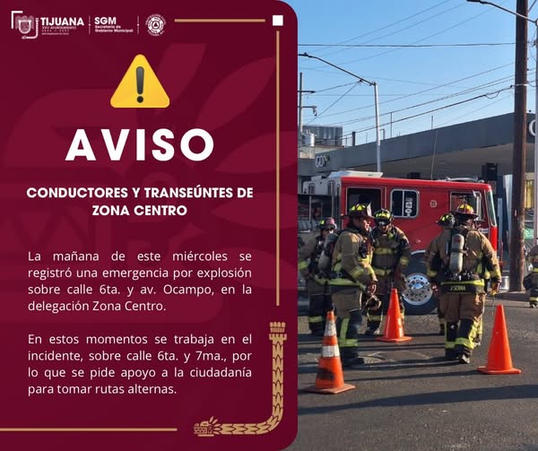 El gobierno Municipal informa a la ciudadanía que en estos momentos elementos de Protección Civil Tijuana y de Dirección de Bomberos Tijuana atienden un reporte por explosión en una alcantarilla, registrada sobre la calle Sexta y avenida Ocampo en la delegación Centro.