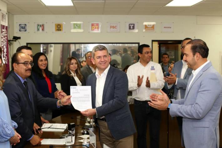 El candidato del Partido Acción Nacional (PAN), Oscar Vega Marín presentó su registro ante el Consejo General del Instituto Estatal Electoral (IEE) como candidato a Gobernador del estado.