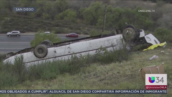SE VOLCÓ AUTOBÚS EN SAN DIEGO,TRES MUERTOS