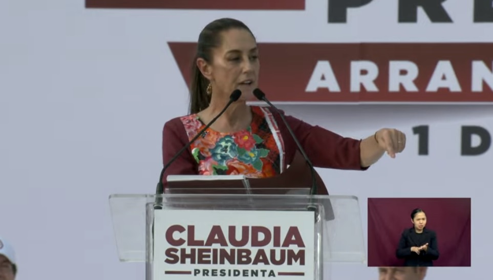 - 17:33 horas: “¿Se siente la transformación en el país?”, pregunta Claudia Sheinbaum en el arranque de su campaña, al inicio de su discurso. “Quedó atrás el modelo neoliberal y la corrupción que lo acompañó por 36 años, y surgió el humanismo mexicano”.