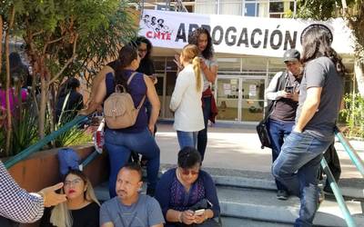 Cientos de maestros realizan un plantón en las instalaciones del Sistema Educativo Estatal (SEE), en Tijuana. Marco Antonio Pacheco Peña, coordinador estatal de la CNTE, informó que más de tres mil profesores de Baja California se encuentran con problemas en sus pagos ya que no les han cubierto los interinatos que hicieron en el ciclo escolar que concluyó.