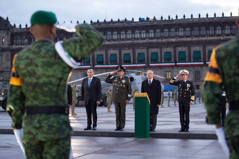 Rodeado de elementos del Ejército, Guardia Nacional, rescatistas, funcionarios de su gabinete, de la jefa de Gobierno de la Ciudad de México, Claudia Sheinbaum, y directores de Protección Civil y de la Cruz Roja Mexicana, el presidente izó la bandera a media asta para honrar a las víctimas de ambos terremotos.