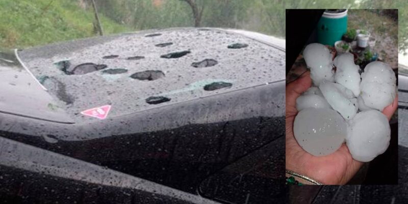 La tormenta dejó cientos de autos dañados en cristales y carrocerías. Protección Civil estatal sugiere “evitar salir de casa”.