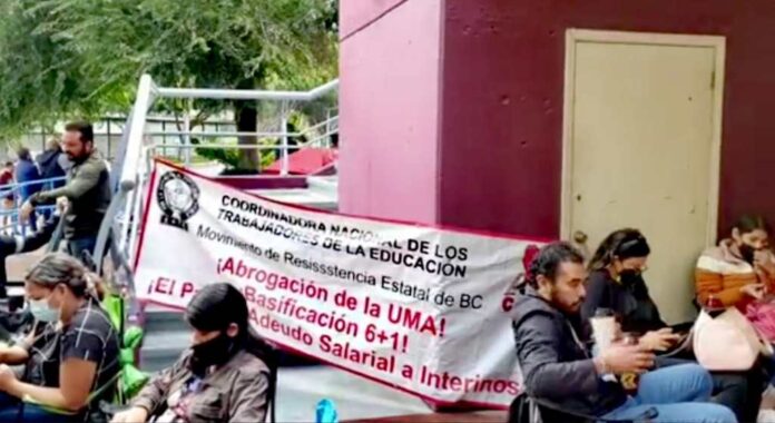 Maestros de la Coordinadora Nacional de Trabajadores de la Educación pasaron de la marcha a la toma de instalaciones este día de la Secretaría de Educación en Tijuana para exigir el pago de 2 mil 500 trabajadores interinos.