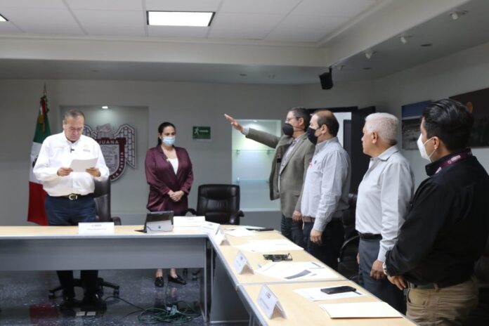 Tijuana, Baja California, a 9 de octubre de 2020.- El presidente municipal, Arturo González Cruz, tomó protesta oficialmente a los titulares del Instituto Metropolitano de Planeación (Implan), Rodolfo Argote Gutierrez; el Fideicomiso Promotora Municipal de Tijuana (Promun), Adrián Camacho Valencia y la Dirección de Desarrollo Social Municipal (Desom), Angélica Cristina Del Real Chávez.