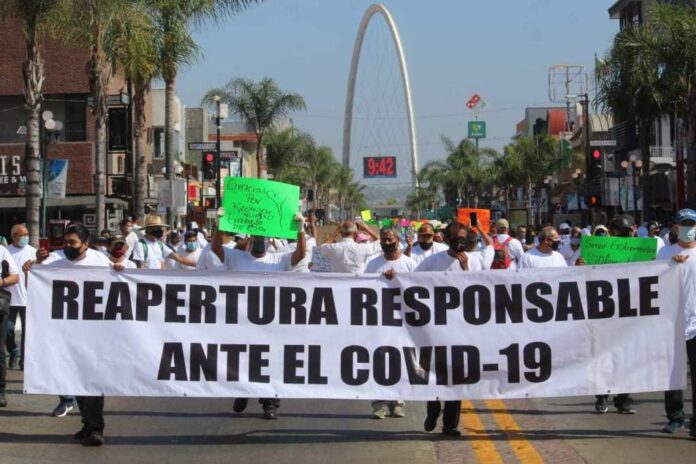 La protesta pacífica de empleados con camisetas blancas tomó la avenida Revolución como zona de manifestación dónde mostraron pancartas con diversas leyendas en favor de reactivar la economía familiar: «Tijuana tiene prisa». «Nuestras familias se encuentran desamparadas». «Ya no puede nuestra economía».