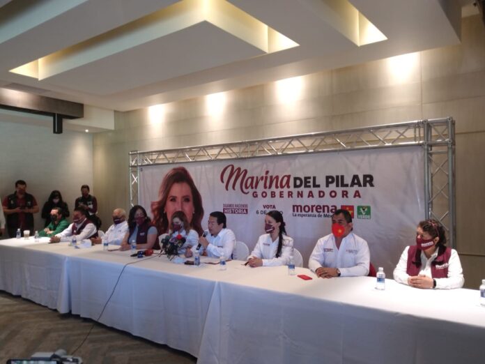 En conferencia de prensa, junto con el dirigente nacional de MORENA,Mario Delgado y los demás representantes de la coalición, PVEM y PT, así como candidatos a puestos de elección para diputados, Marina del Pilar, externó su deseo de continuar en el combate a la corrupción, tal como lo hace, su líder el presidente de México, Andrés Manuel López Obrador.