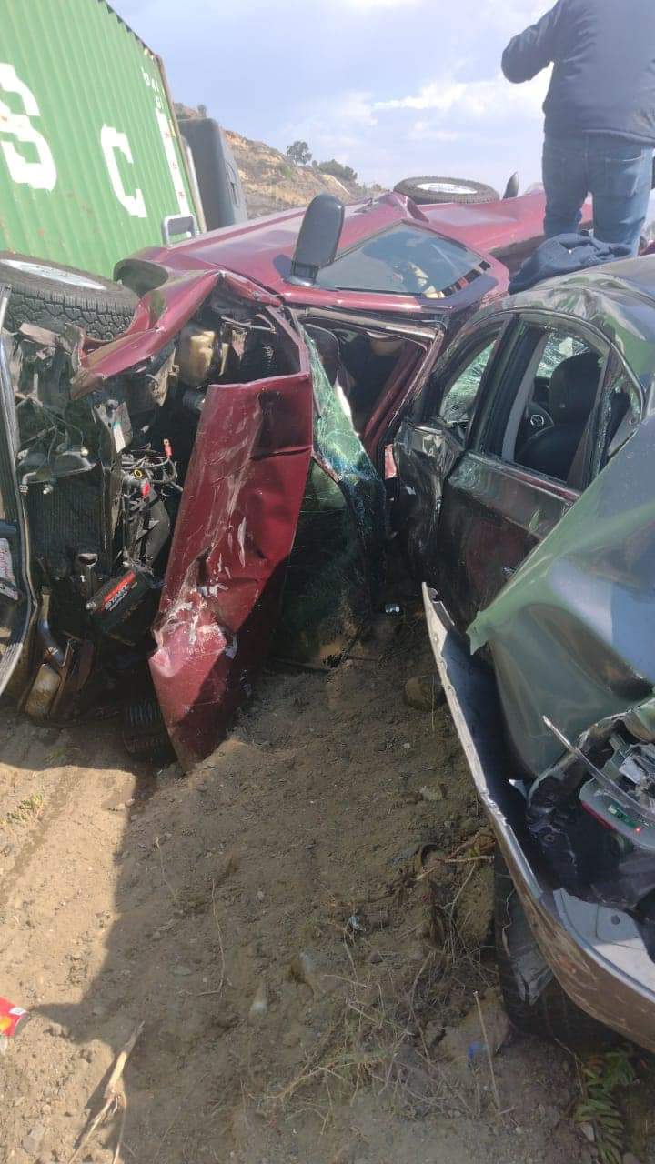 Según los primeros reportes de las autoridades, un vehículo tipo pick up se impactó inicialmente contra la caja del camión de carga, quedando de bajo de ésta y ocasionando la muerte de los ocupantes de esa unidad.