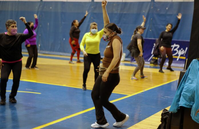 TIJUANA, BC., a 22 de marzo de 2021.- A un año de la suspensión de actividades por la pandemia de la covid-19, algunas mujeres del grupo de activación física volvieron este lunes a la actividad presencial en el gimnasio de usos múltiples del Centro de Alto Rendimiento (CAR) en Tijuana.
