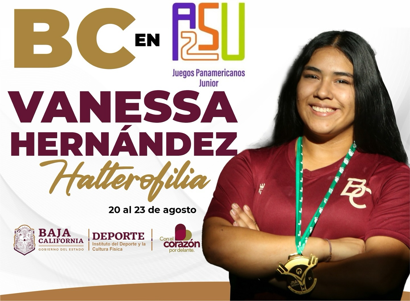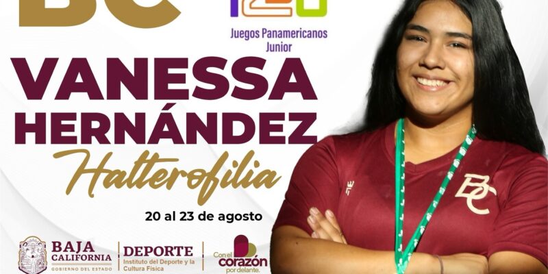 TIJUANA,BAJA CALIFORNIA, 02 AGOSTO 2025.- ¡Baja California presente en los Juegos Panamericanos Junior Asunción 2025! Nuestra orgullosa representante Vanessa Hernández competirá en halterofilia del 20 al 23 de agosto, llevando el nombre del estado en alto. ¡Vamos con todo, Vanessa!
