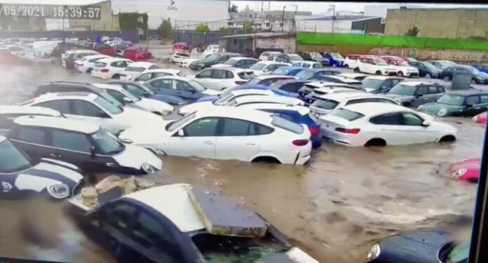 En segundos los vehículos, algunos de las marcas BMW y KIA, fueron arrastrados por el agua que en un instante alcanzó un gran nivel.