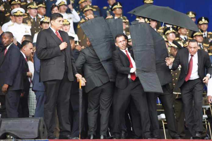 El presidente venezolano, Nicolás Maduro, su esposa Cilia Flores, y el alto mando militar de Venezuela han sido desalojados este sábado de emergencia de la celebración del 81º aniversario de la Guardia Nacional Bolivariana (GNB) en la avenida Bolívar de Caracas después de producirse al menos una explosión, que el Gobierno ha atribuido a drones con supuestos explosivos que sobrevolaban la zona. Según el régimen, los aparatos fueron derribados por francotiradores. En un discurso televisado dos horas después del suceso, Maduro ha acusado directamente al presidente saliente de Colombia, Juan Manuel Santos, de haber intentado asesinarlo a través de unos sicarios que, según él, han ejecutado el supuesto atentado. Se trata de una acusación inaudita y sin precedentes incluso dentro de la abierta hostilidad verbal de ambos Gobiernos.